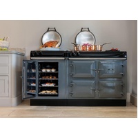 The AGA R3 Series 160 features a cast-iron heat storage roasting oven, an enamelled baking/simmering oven as well as a warming oven and an integrated, infrared grill. This model also features an iconic AGA hotplate, which can be used for boiling or simmering, and a state-of-the-art two-zone induction hob.