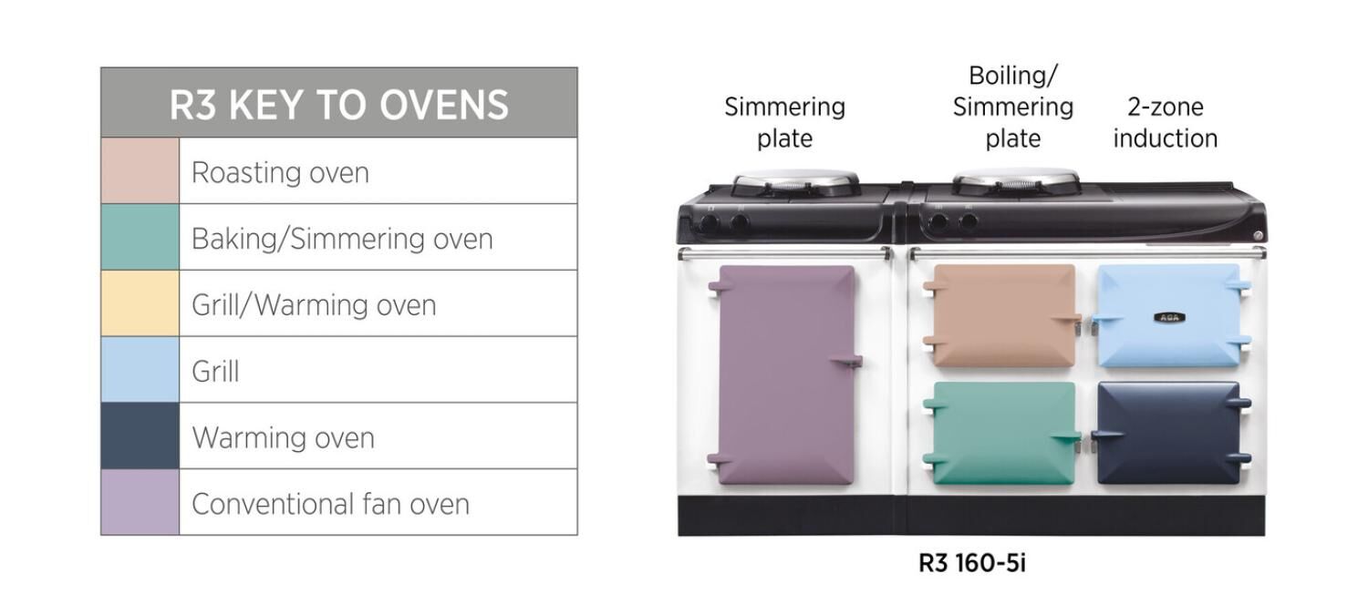 AGA R3 Series 24/7 Radiant Heat 160 Electric Cooker With 5 Compartments and Induction Hob