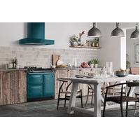 At just 90cm wide, this model packs in a cast-iron roasting oven, an enamelled baking/simmering oven as well as a helpful tall warming oven, which features an innovative infrared grill. The AGA R3 Series 90 also features an iconic AGA hotplate, which can be set to boiling or simmering, and a state-of-the-art two-zone induction hob.
