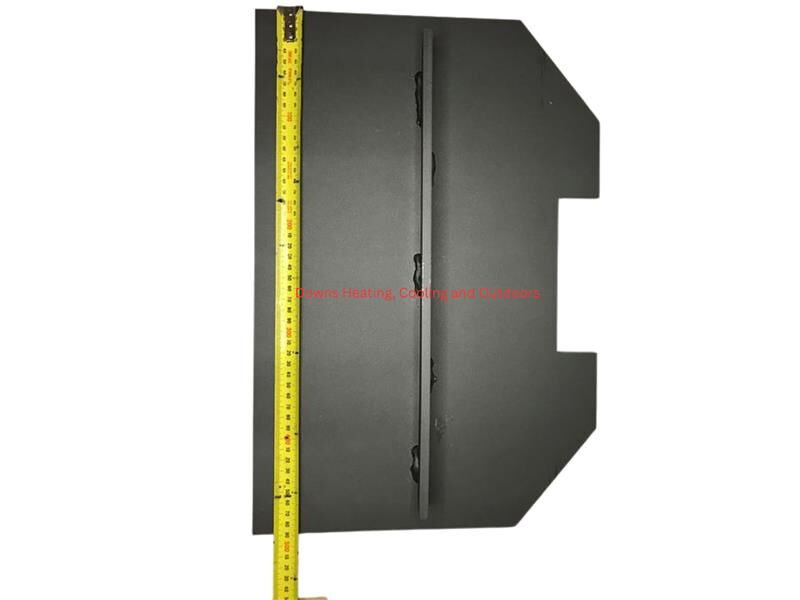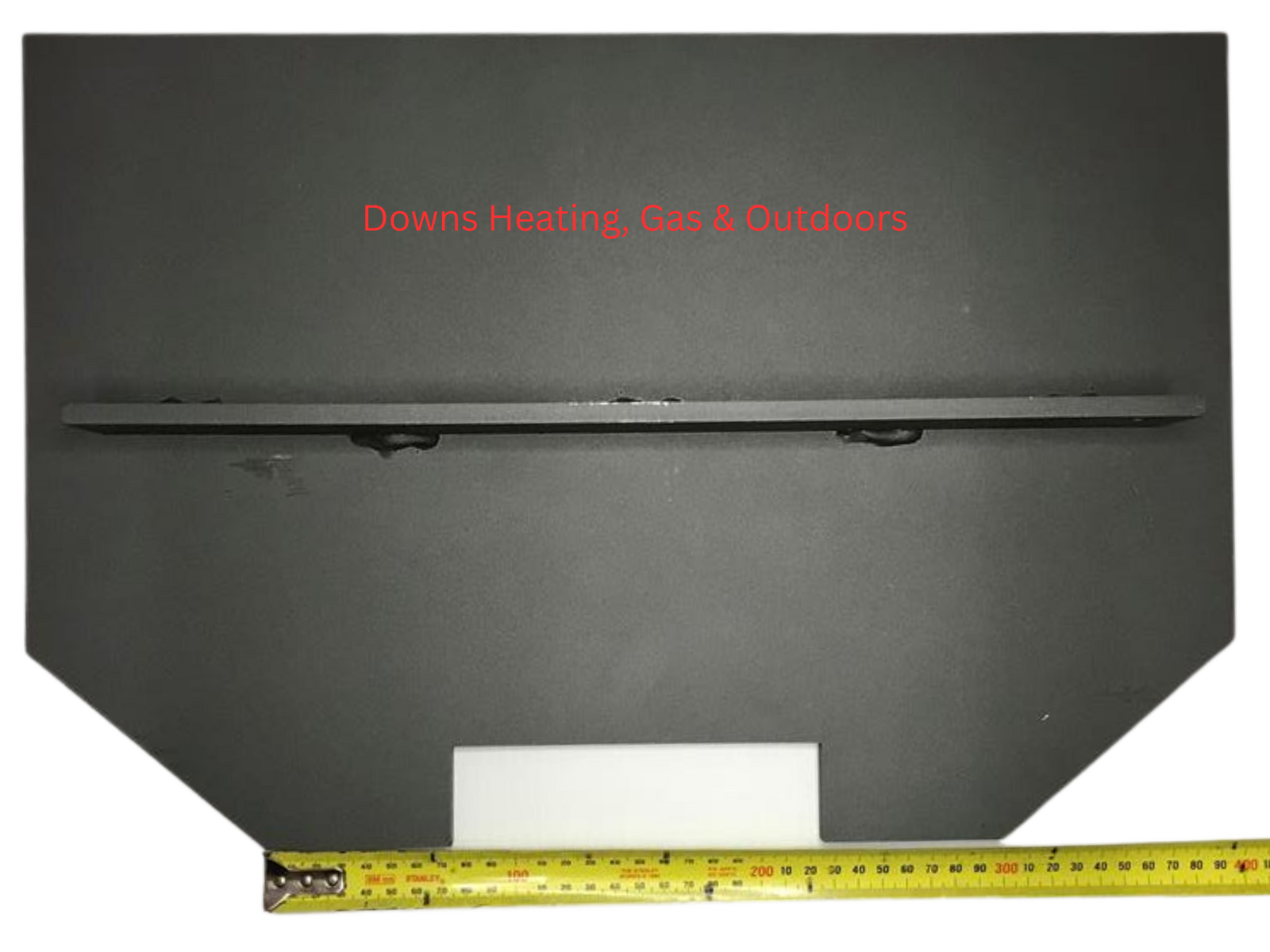 This baffle plate measures 490mm x 330mm and suits a Saxon Rosewood. It has a ridge in the centre of the baffle on one side of the plate. On the otherside, two brackets are located along the long edge. Please compare this baffle, its features and its meausrements to your own heater before purchasing.