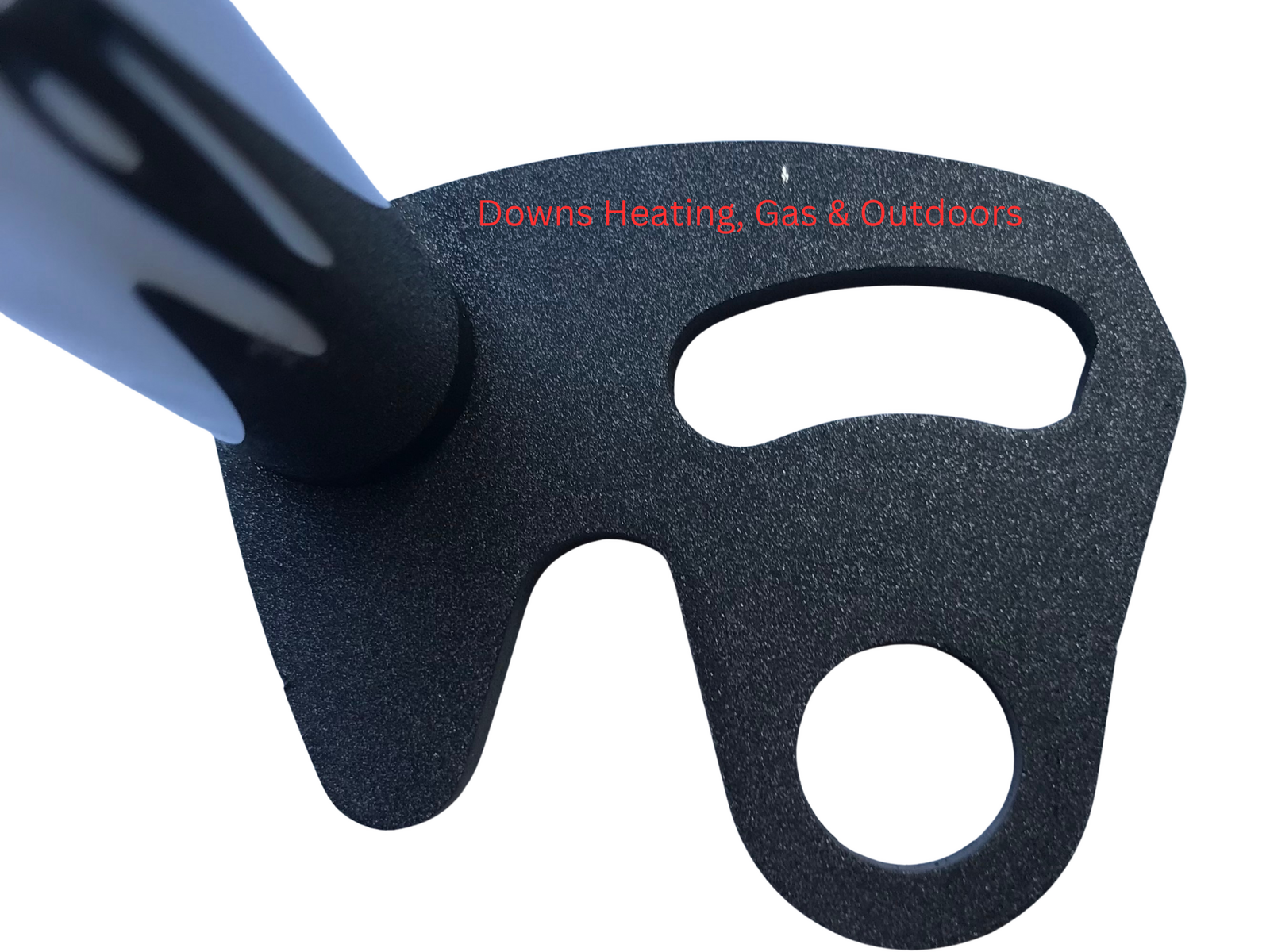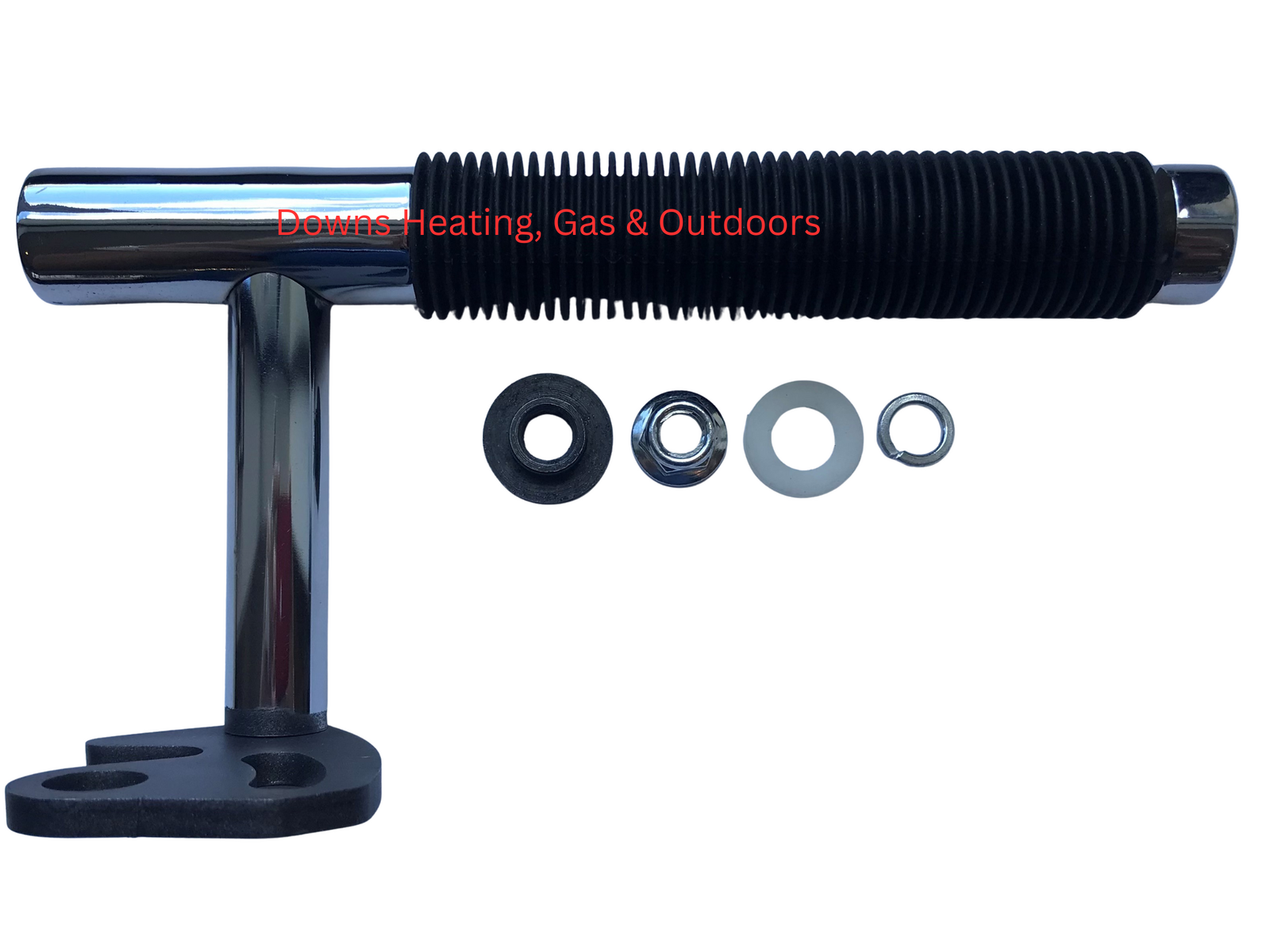 This complete door handle and shaft assembly suits the following Kent & Austwood wood heaters