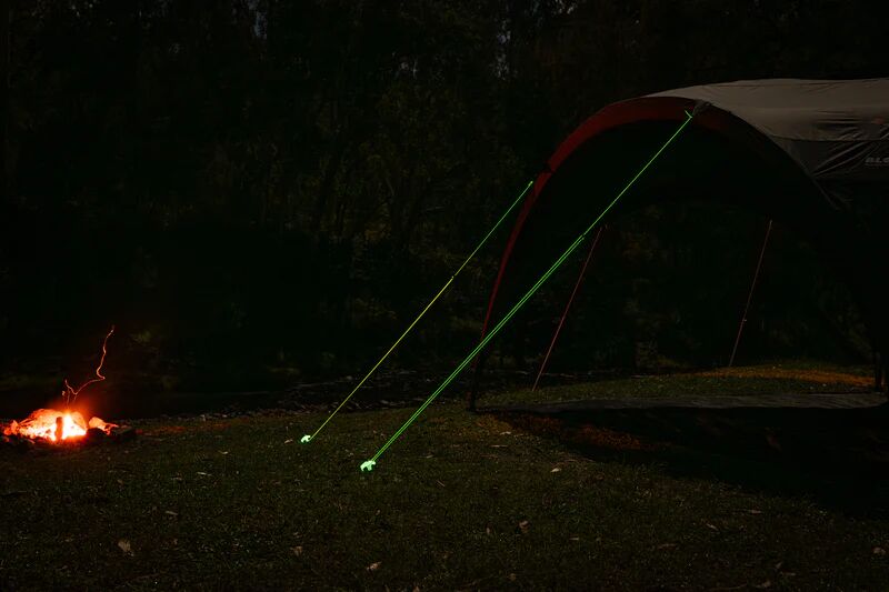 Enhance campsite safety with this 4-pack of glow-in-the-dark guy ropes. Made from durable 4mm polyester, they improve visibility at night, reducing trip hazards. Each rope features an aluminium tensioner for easy adjustment and a generous 3.5m length for versatile use. Stay secure and visible in the dark!