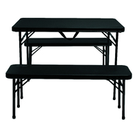 - Corrosion resistant steel frame under table top and benches for exceptional durability