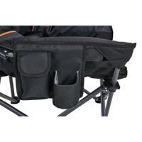 The Roamer Moon Chair is your ideal companion for camping, beach trips, picnics, and watching sports. Its cosy moon shape provides ultimate comfort, supported by a heavy-duty 22mm steel frame with vertical stabilizers for exceptional durability. The extra thick padding and integrated lumbar support ensure you can relax for hours. With a 200KG weight rating, this chair is designed to accommodate everyone. It also includes practical features like a side storage pouch and drink holder, and it comes with a 600D two-tone polyester carry bag with YKK zippers for easy transport. Backed by a 5-year warranty (2 years + 3 years with product registration), the Roamer Moon Chair combines comfort, durability, and convenience, making it the perfect choice for your outdoor adventures.