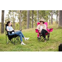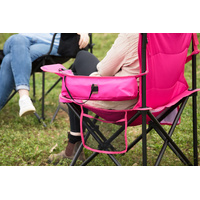 This chair comes equipped with an oversized insulated cooler designed to accommodate a wine bottle, keeping your beverages chilled. It also features a large drink holder and a wine glass holder. Dual side organizer pockets and a built-in bottle opener add to the convenience, allowing you to keep your essentials close at hand. The pink Malibu Arm Chair combines comfort, durability, and practicality, making it the perfect companion for all your outdoor adventures.